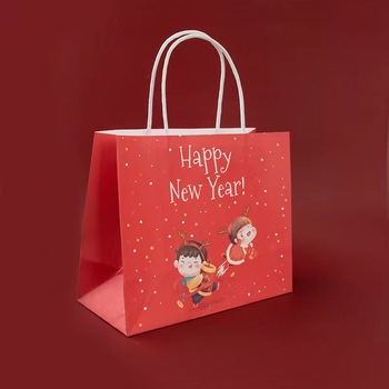 ספק סיני מכירה לוהטת ידית Takeout קייטרינג חג שקיות מתנת סוכריות למחזור נייר שקיות